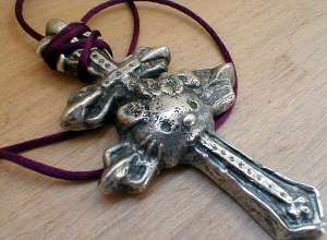 kitty krucifix, pewter, 2001